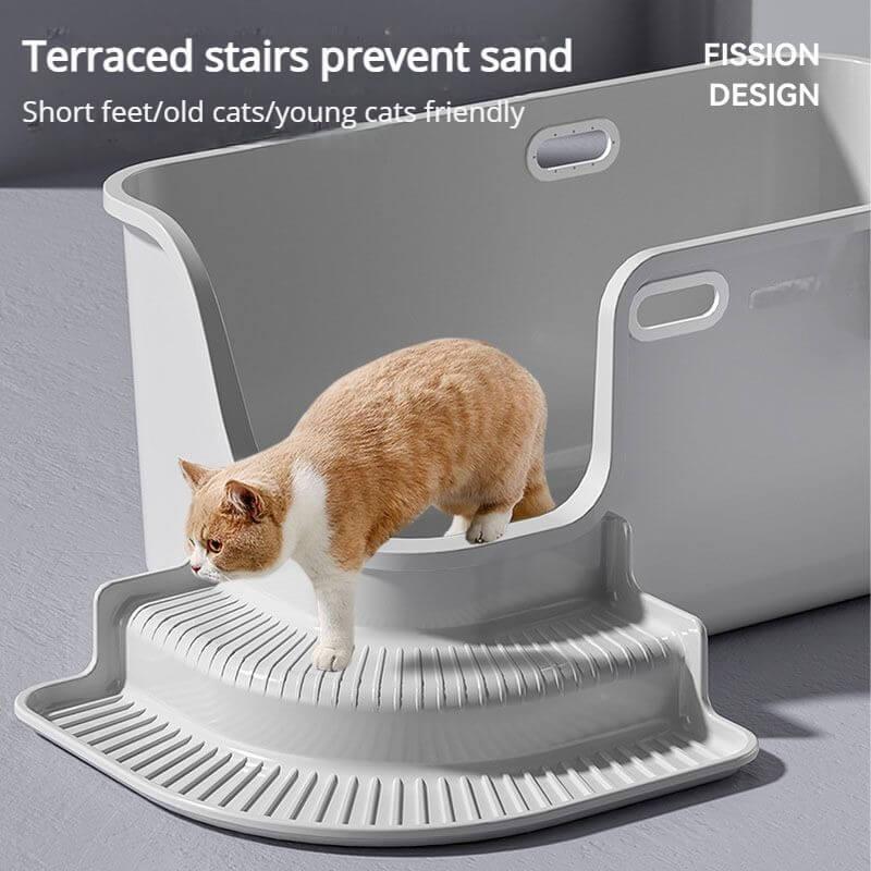 Designed for easy access with a low threshold, your cat can effortlessly enter and exit, reducing stress. The roomy layout, with terraced stairs, prevents litter tracking, making it ideal for short-legged cats, seniors, and kittens.