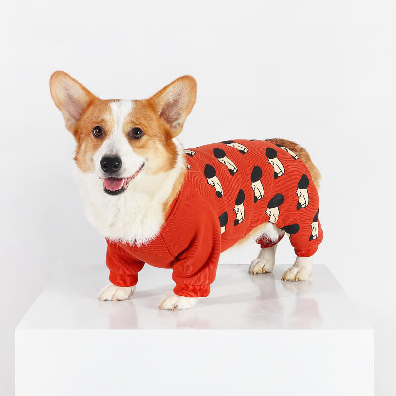 Dress your beloved Corgi in winter charm with our Red Dog Patterned Jumpsuit – a perfect blend of warmth, comfort, and adorable style!