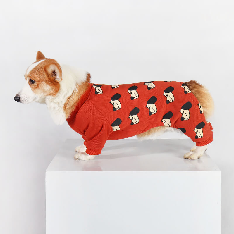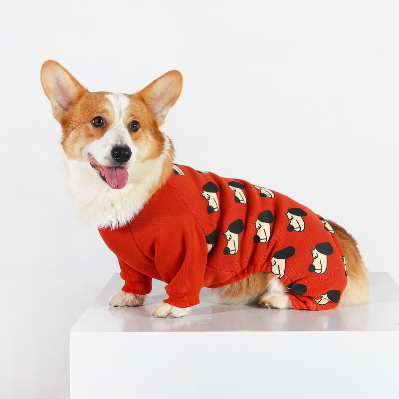 xRed Dog Patterned Jumpsuit for Cozy Corgis: Warm, Fleece-Lined, and Stylish