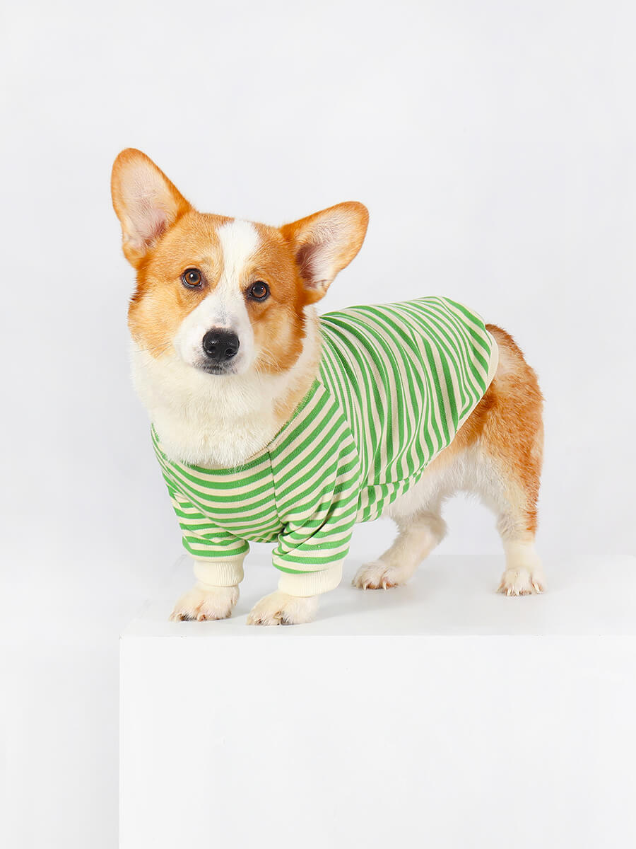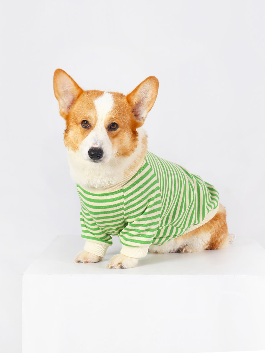xCozy Green Striped Corgi Sweater: Warm and Comfortable with Sleeves